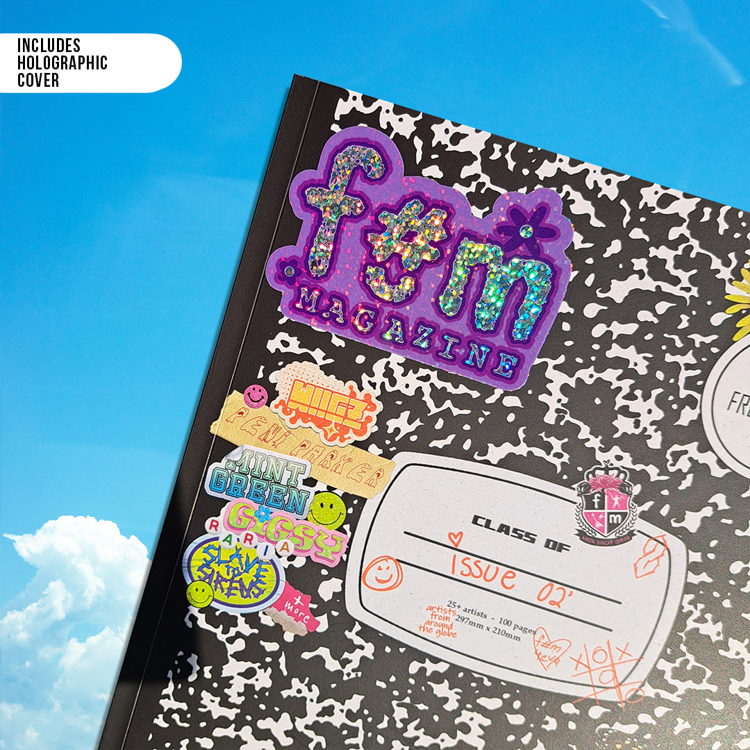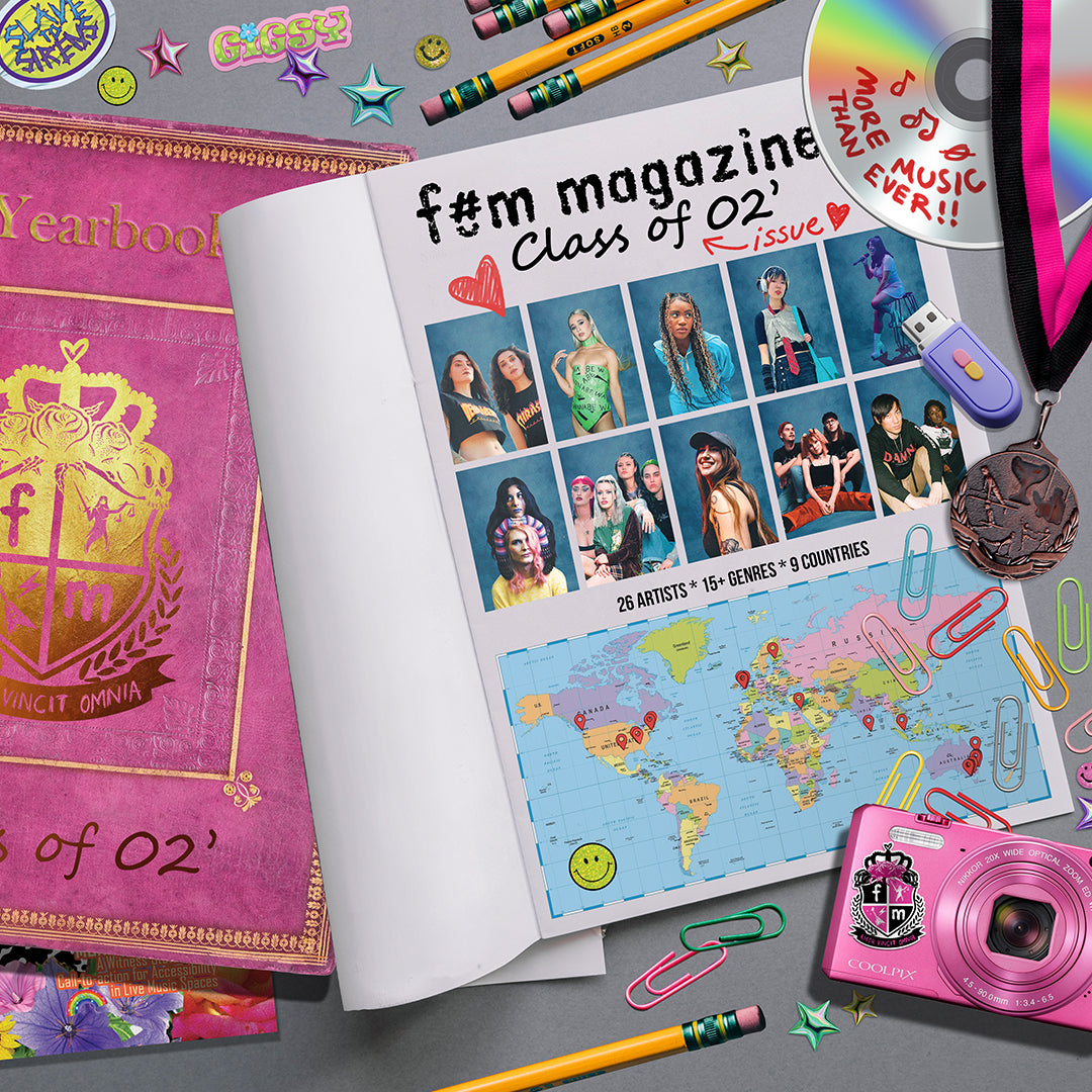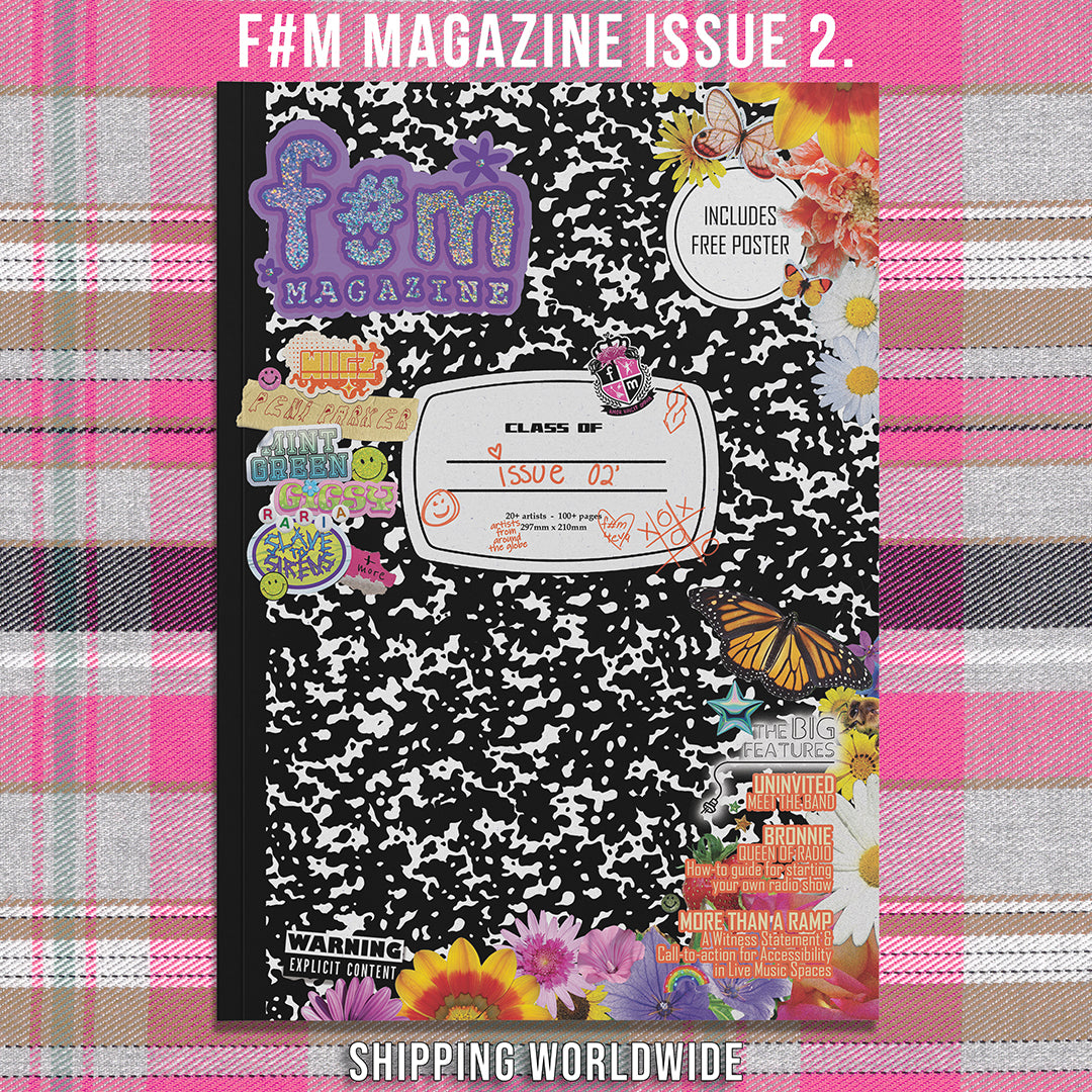 Welcome to the f#m School. Home to retro yearbook artist profiles, riot grrrl summer reading lists, imaginary school newspapers, & enough music to blow your socks off! Issue 02' is the nostalgia of growing pains and big dreams, when posters of your favourite bands fill your bedroom walls - rewritten with the representation everyone deserves to see growing up. Please proceed to your openable contents locker page to find your way to the next class!